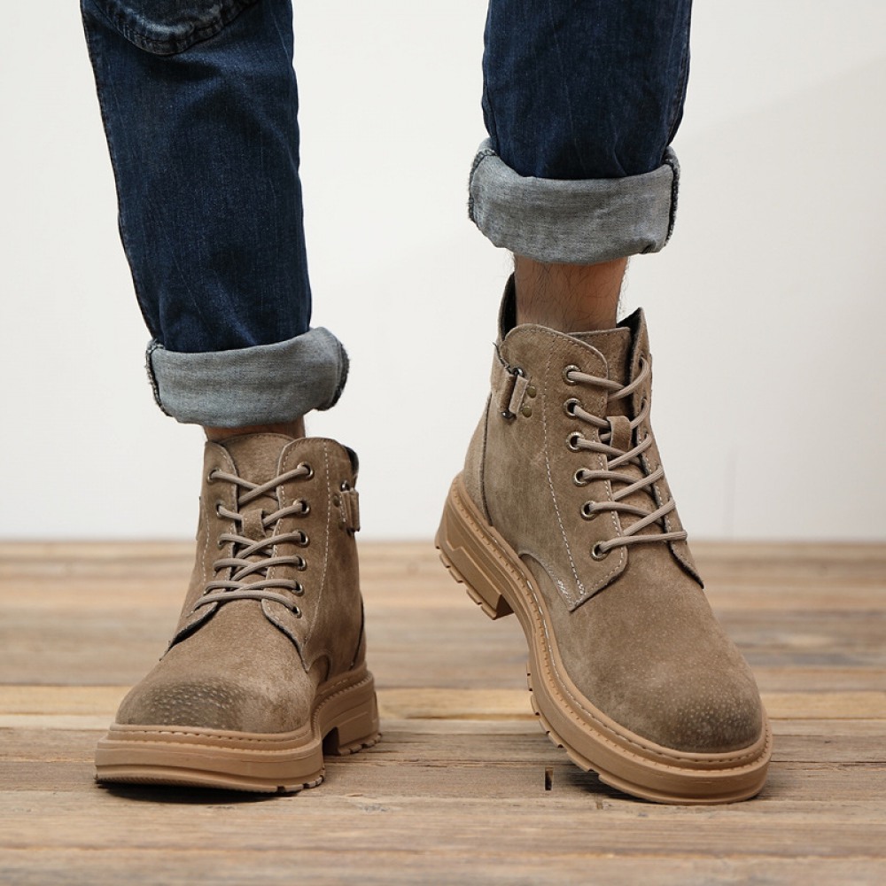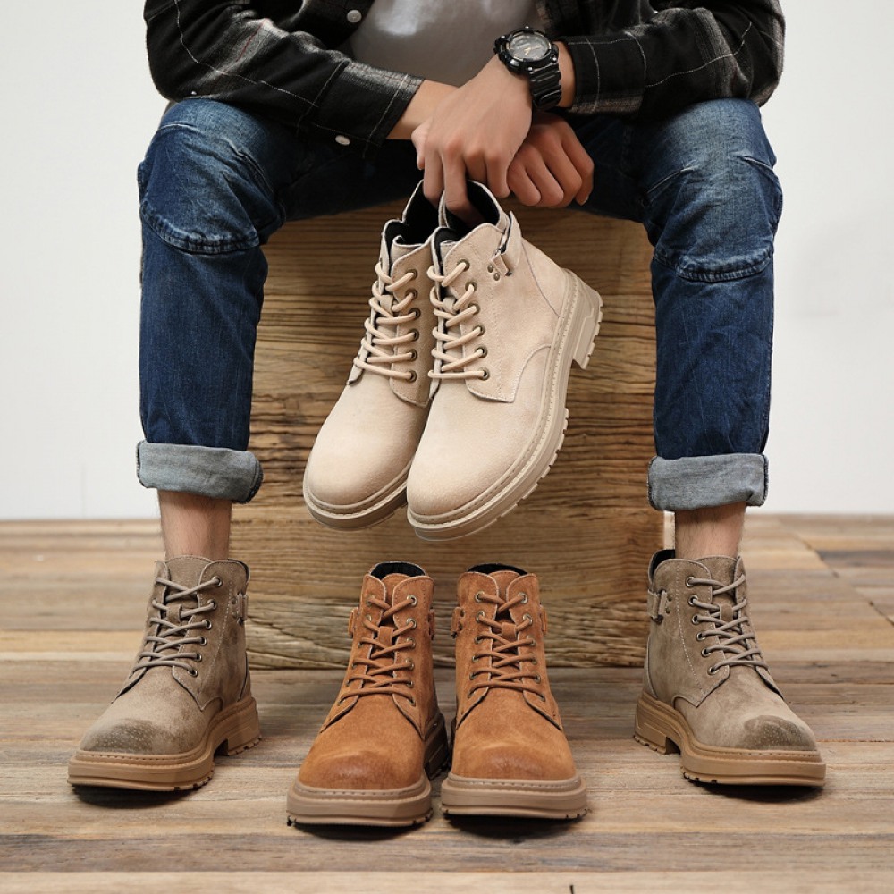 Trend Martin Boots Cow Suede Leather Men's Boots Low-Cut Tooling Boots Casual Mens Short Boots
