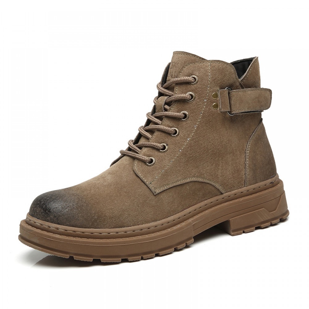 Fall Winter Men's Trendy Tooling Shoes Round Toe Strap Leather Men's Boots Explosive Desert Boots Wolf Boots