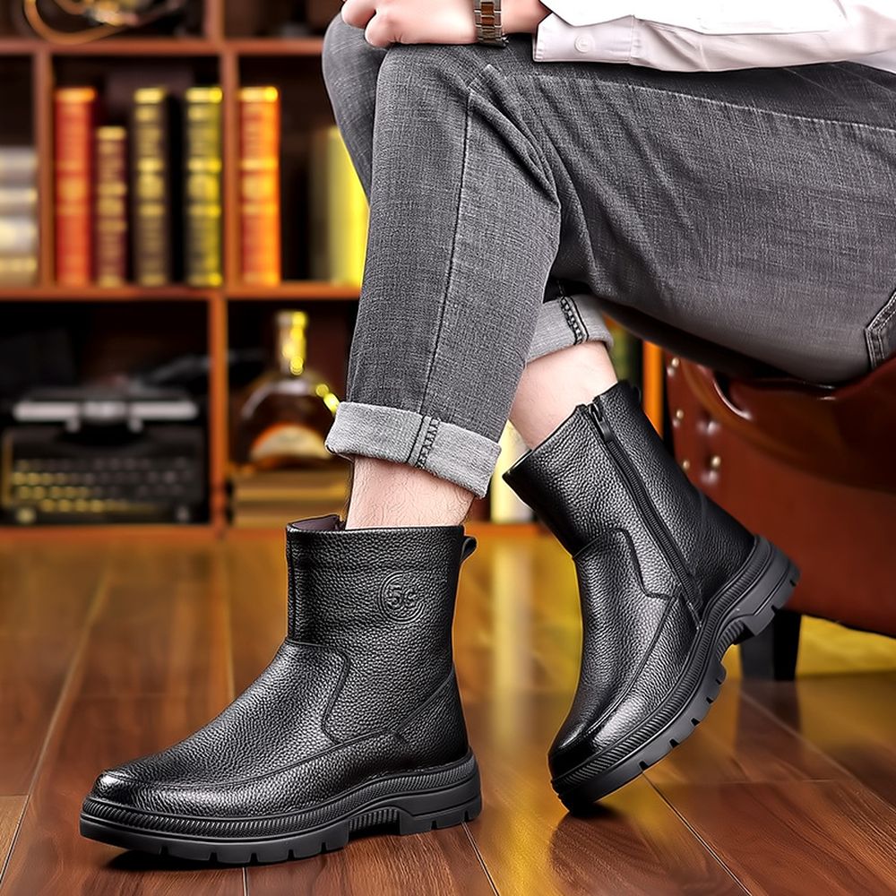 Martin Boots Men's Autumn New Fashion Casual Leather Boots Add Velvet Warm Leather High-Top Boots for Men