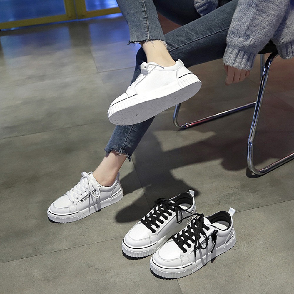 Spring New White Shoes Female Leather Student Shoes Female Running Flat Shoes Casual Shoes