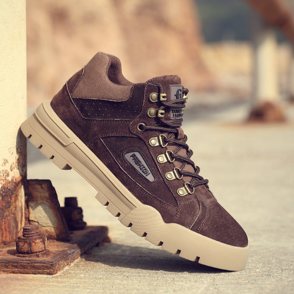 Men's High Top Shoes Leather Casual Martin Boots Leather Shoes Autumn Trendy Shoe