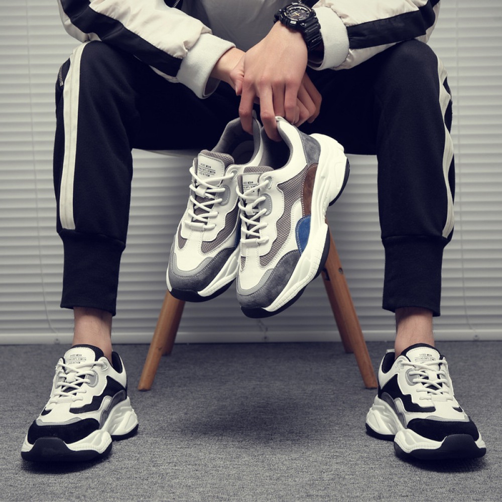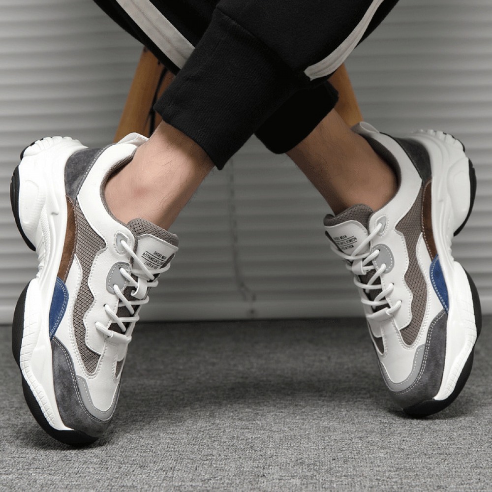 Spring Casual Sports Shoes Men's Fashion Thick-Soled Lace-Up Round Toe
